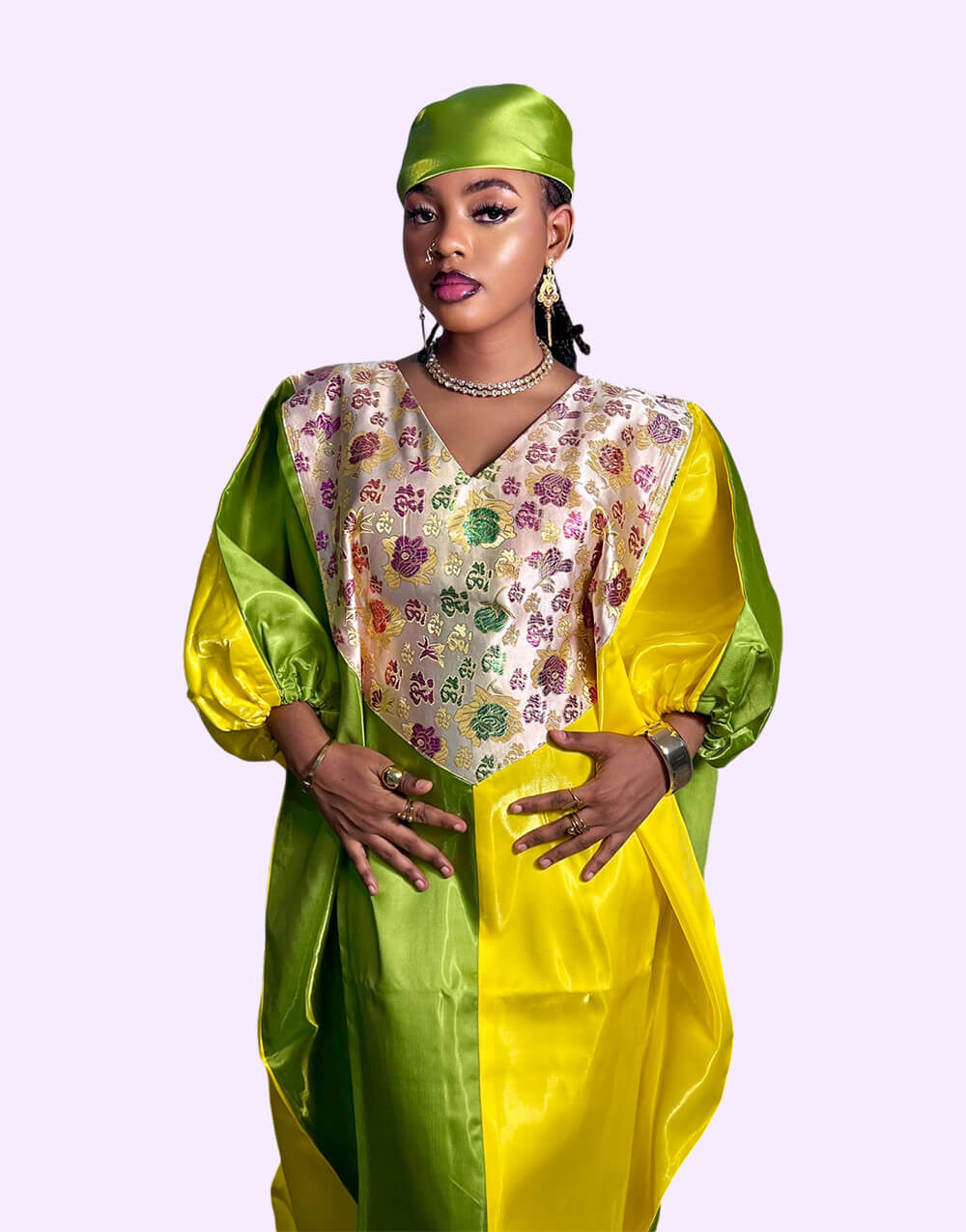 Order Your FLOWERY YELLOW Design Bubu Gown Today!